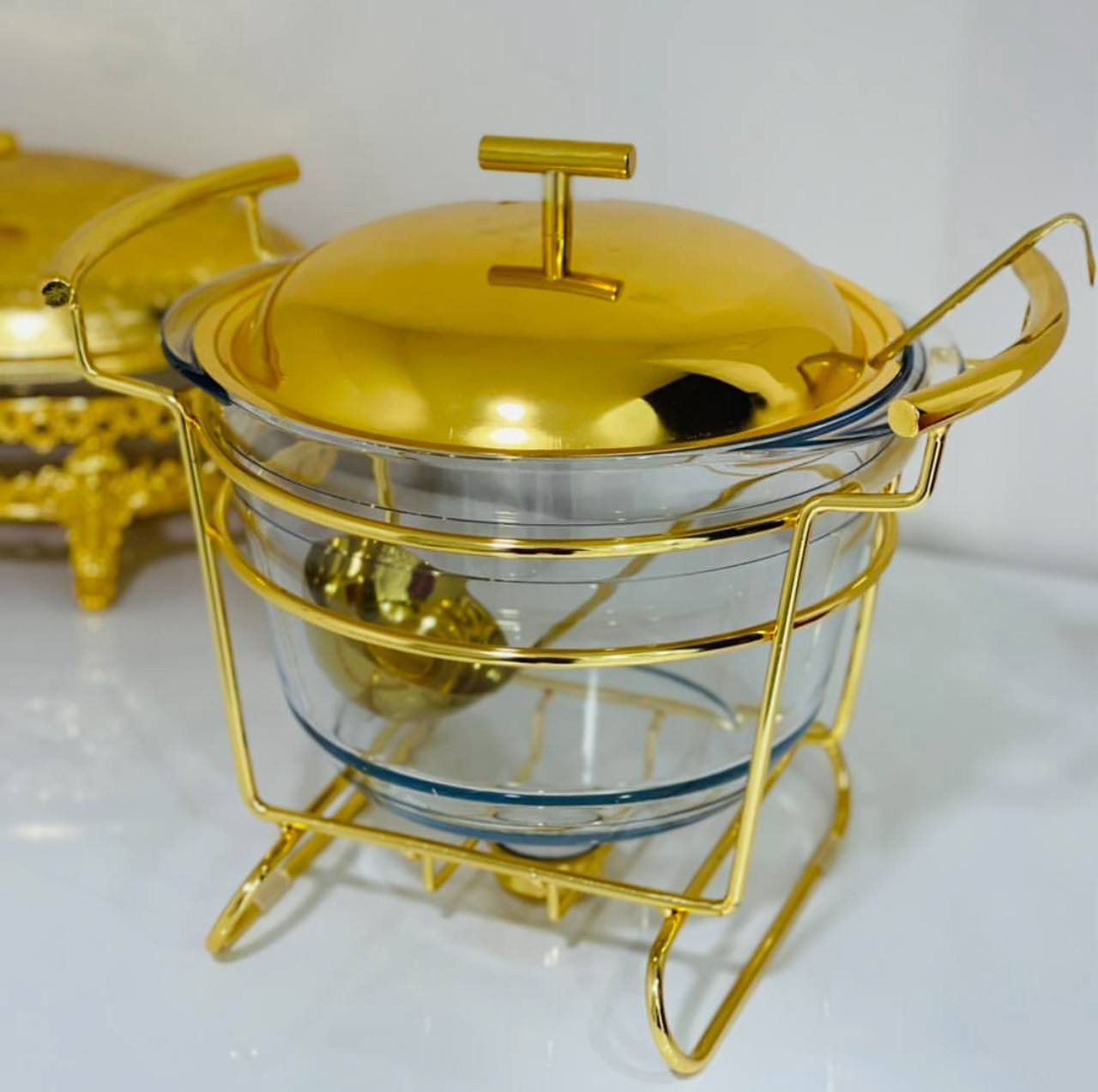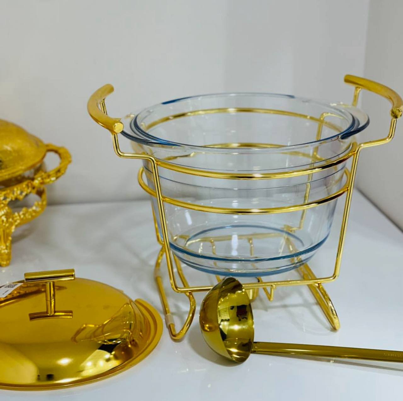 ما يجعل هذا المنتج مميزًا هو الإطار المعدني الذهبي الذي لا يقتصر دوره على تعزيز الشكل الجمالي، بل يساهم أيضًا في إبقاء الشوربة دافئة لفترة أطول عند وضع شمعة صغيرة تحته. إنه الحل الأمثل للحفاظ على درجة الحرارة المناسبة أثناء التقديم.